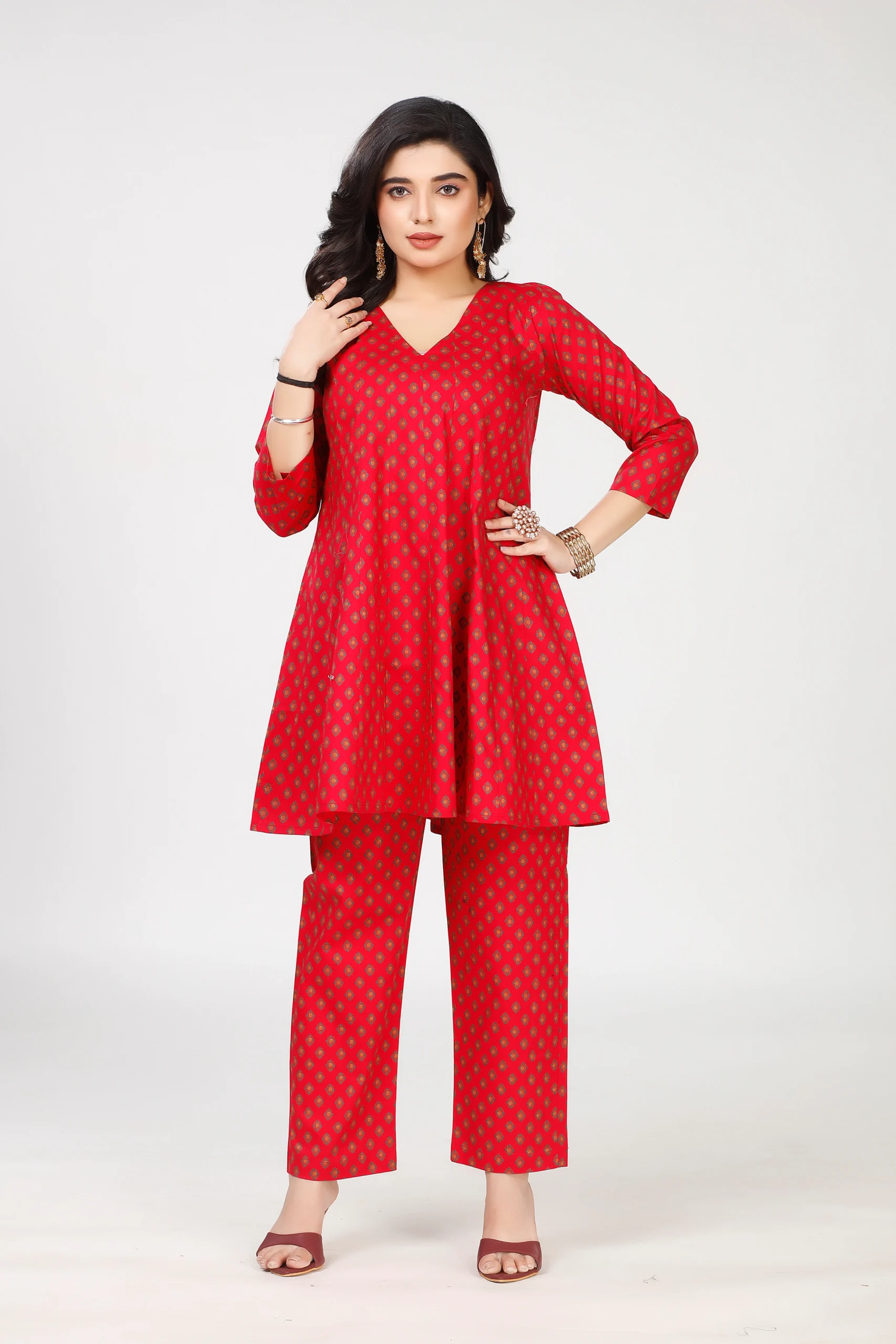 This stylish two-piece outfit is designed for both elegance and ease.